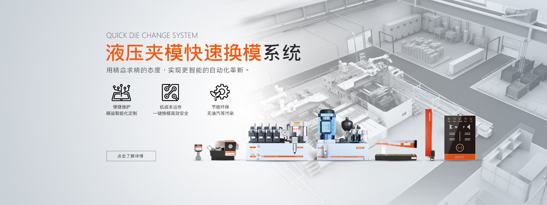 液壓快速換模系統 格萊富注塑機快速換模系統采用 TY 夾模器,以油壓驅動取代舊式固定夾的方式,不需要在模產過程中,短時間內輕易完成換模作業,更省時省力。目前已在家電,汽車、機械等行業豐富應用